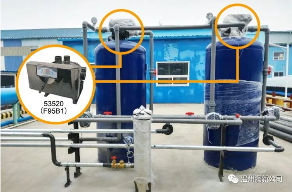 (4)两台锰砂过滤器一用一备,采用自来水进行反冲洗,当A罐过滤器达到预定的运行周期时,通过润新53520(F95B1)控制阀和三通阀自动将A罐出水切换成B罐出水,然后A罐进入反冲洗,清洗结束后转至运行状态。