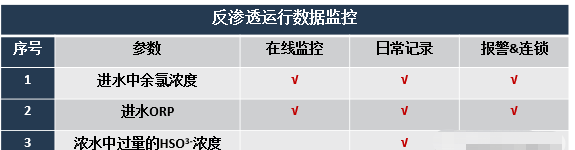 1)数据监控反渗透进水水质,确保进水不含余氯。